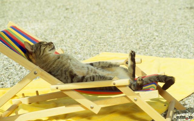 Pisica - se odihneşte pe plajă