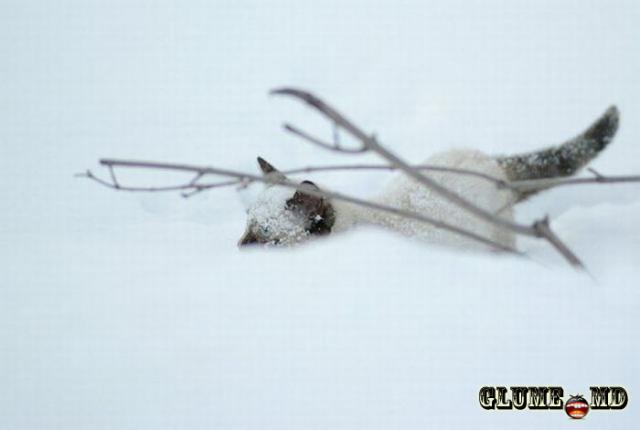 Pisica - se furişează prin zăpadă