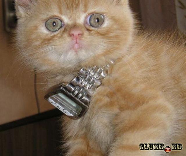 Pisica - cu cască îi sperie pe toţi