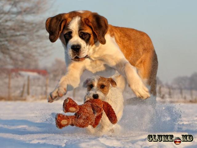 Cîinii - se distrează în zăpadă