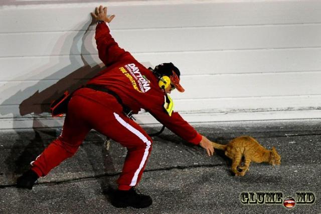 Omul - vrea să prindă pisica rachetă