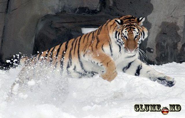 Tigrul - se joacă în zăpadă