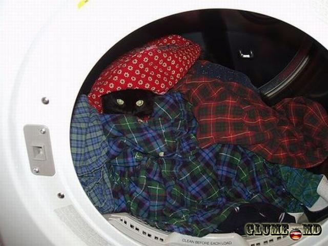 Pisica - sa ascuns între rufe