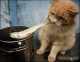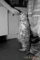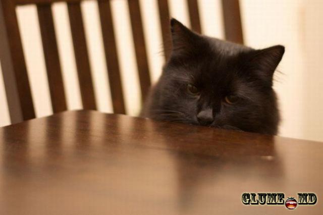 Pisica - se uită cu jale la pulpă de găină