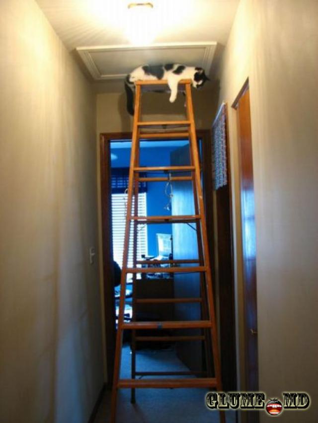 Pisica - se odihneşte pe scară