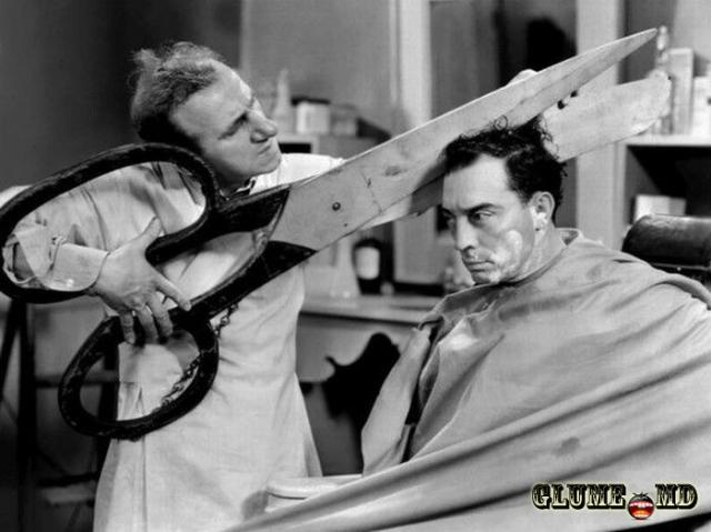 Frezerului i sa în mînat foarfecile oraşului - şi el îl probează