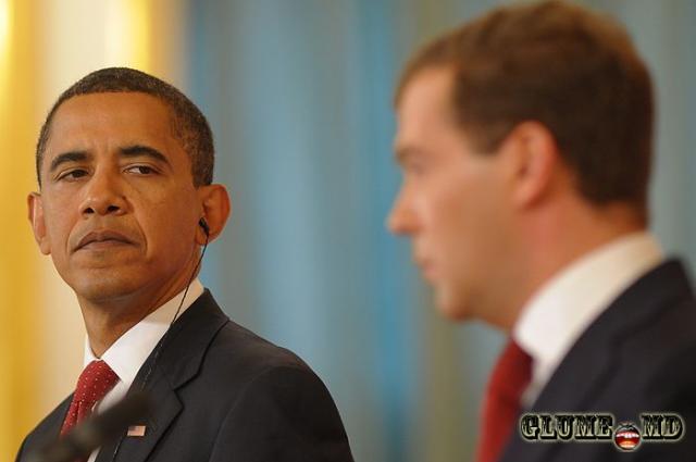 Barack Obama - îl priveşte de sus pe Dmitri Medvedev