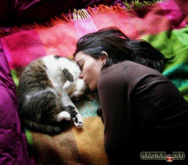 Fata şi pisca - dorm liniştiţi