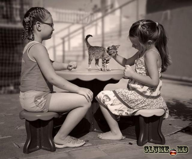 Copiii - se joacă cu pisica